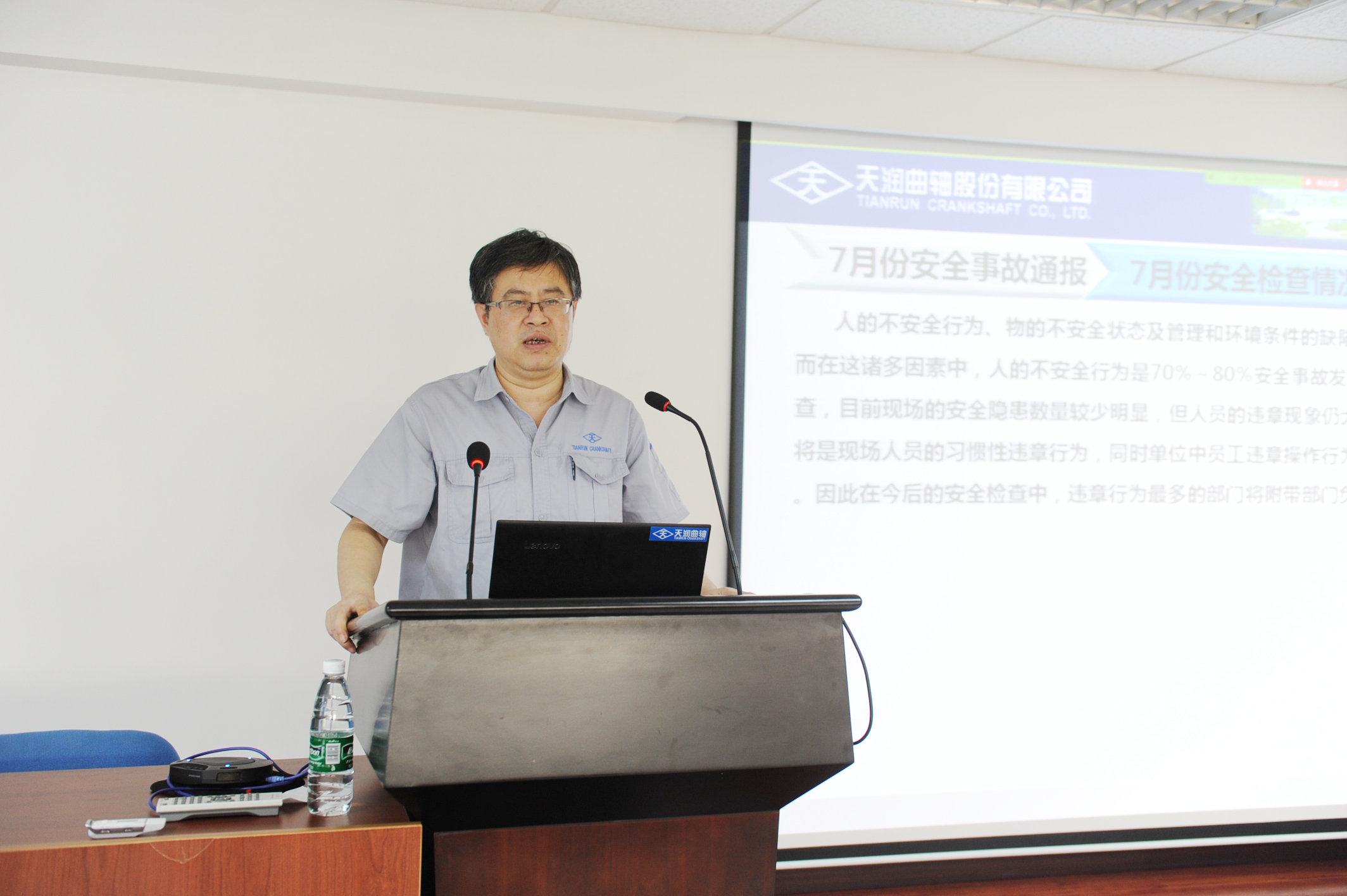7月26日,公司在电教室召开安全工作会议。全体中层以上干部、各事业部/子公司精益推进员、生产部级安全员参与会议。常务副总经理周先忠对近阶段公司安全工作进行总结点评,生产运营管理部部长邢新志主持会议。